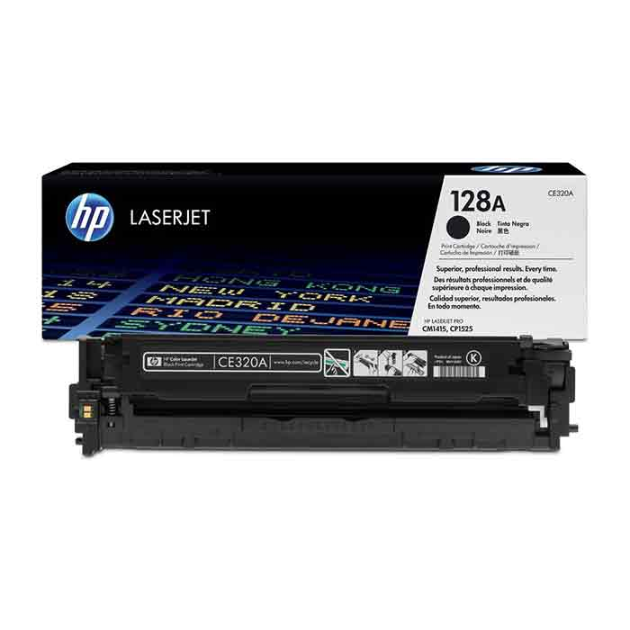 Toner HP 128A 2k svart. HP 128A svart LaserJet-tonerkassett 365 x 100 x 110 mm 0,80 kg Genomsnittlig kontinuerlig kapacitet hos svart kassett: 2000 standardsidor. Kapaciteten anges i enlighet med ISO/IEC 19798. Passar till: CP1525, LaserJet Pro CM1415. CE320A