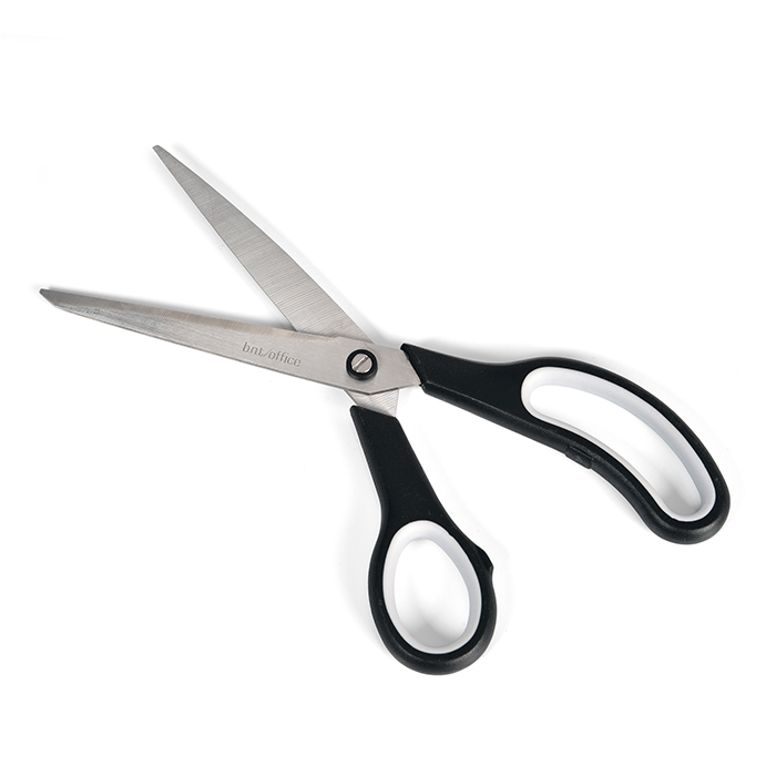 Sax med skarpa, skruvade blad av rostfritt stål. Handtag med gummiinsida för bekvämt grepp. Den perfekta saxen för både kontoret och hemmet!