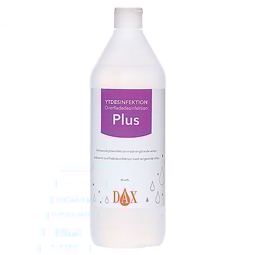 DAX Ytdesinfektion Plus är avsedd för desinfektion av släta ytor, t.ex. undersökningsbritsar, bänkar, bord etc. Effektiv mot bakterier, svampar och olika typer av virus som t.ex. Hepatit B, C och HIV. Exempel på användningsområden för DAX Ytdsesinfektion Plus är inom hälso-, sjuk- och tandvård samt hos veterinärkliniker. Produkten är även lämplig för användning inom livsmedelshantering och barnomsorg.
