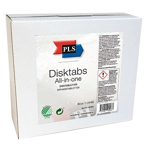 Maskindiskmedel i tablettform med glansmedel och vattenlösligt folie. Löser upp fett och smuts effektivt. Inget salt behöver tillsättas om vattenhårdheten är under 15°dH. 80st tabletter-