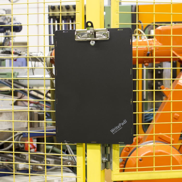 Magnetisk skrivplatta i tålig PP-plast. Stående, svart med magnet. Fäster säkert på alla magnetiska ytor. Kraftig klämma med pennhållare och hål för upphängning. 5 års garanti.
