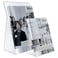 Broschyrställ i transparent plast. Materialet kläms fast på framsidan, titelsidan kan skjutas in bakom för att visa vilken broschyr som ska stå i stället. 2st per förpackning.