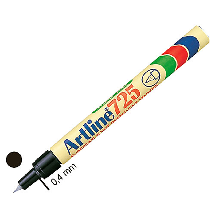 Snabbtorkande märkpenna med 0,4 mm bred spets. För permanent märkning av metall, glas, plast, porslin, trä, textil, folier m.m. Pennkropp av aluminium, plastspets. 12st per förpackning.