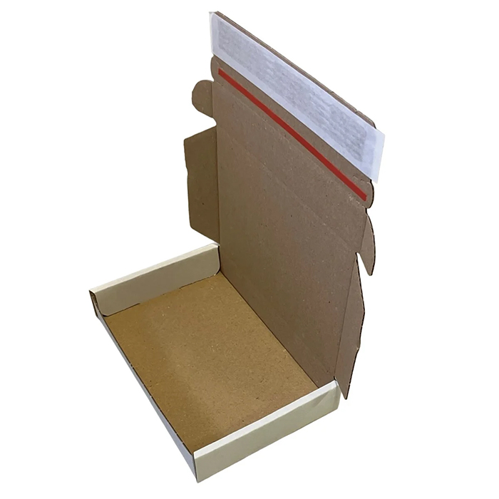 Mindre låda lämplig att skicka som brev. Yttermåtten håller en lägre höjd än 3 centimeter, vilket gör att den går in i vanliga brevinkast och brevlådor. Lådan försluts enkelt med en inbyggd tejpremsa och en rivremsa gör öppnandet smidigt.