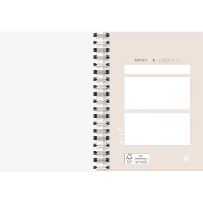 Spiralbunden kalender i smidigt A6-format med en vecka per uppslag. Den har både månads- och årsöversikt för innevarande och kommande år samt extra sidor för anteckningar. Linjal ingår för enkel planering i vardagen.