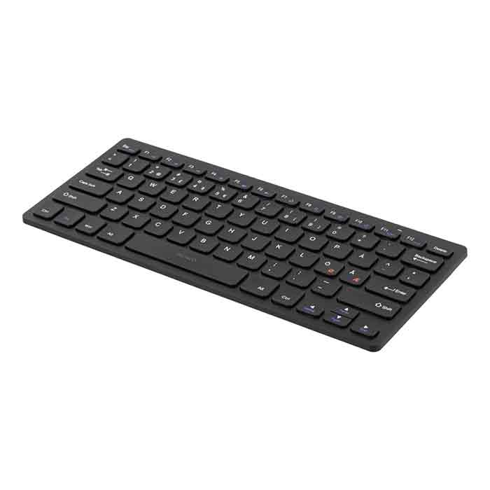 Elegant och kompakt tangentbord från Deltaco som ger en tyst och bekväm skrivupplevelse tack vare sina dämpade tangenter. Med Bluetooth-anslutning och möjlighet att växla mellan Windows, iOS och Android fungerar det lika bra till dator, surfplatta och mobil.
