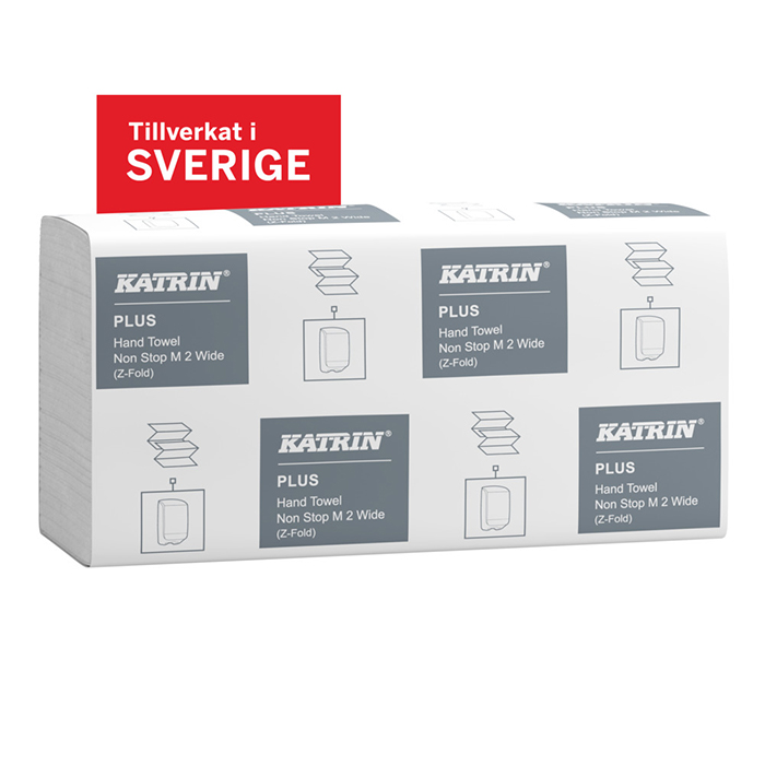 Katrin Plus Z-vikt Wide pappershandduk kombinerar mjukhet med en bred design som ger effektiv torkning. Den mycket höga uppsugningsförmågan bidrar till lägre åtgång och en mer ekonomisk användning. Pappret är producerat av färskfiber från certifierade skogar i Norden och håller en hög standard som passar i miljöer där kvalitet är extra viktigt.