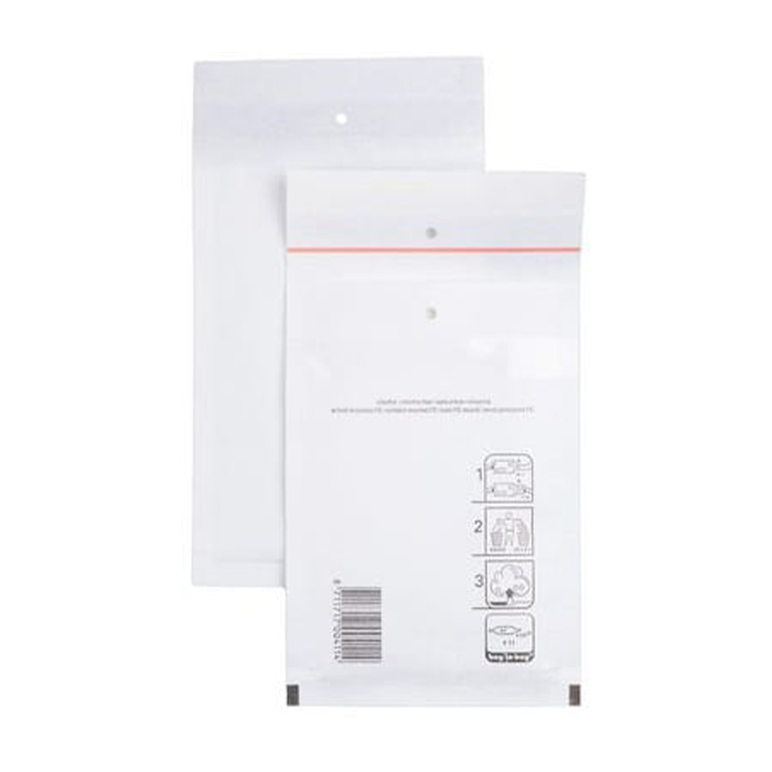 Dessa vadderade e-handelspåsar är tillverkade av vitt kraftpapper och har en bubbelplastklädd insida som ger extra skydd åt innehållet. De är anpassade för att tåla transportens påfrestningar och har en praktisk självhäftande förslutning som gör packningen snabb och smidig.