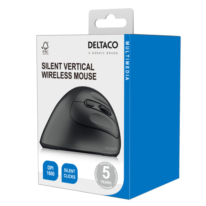 Mus Deltaco MS-815 Vertikal Trådlös 1000-1600DPI svart