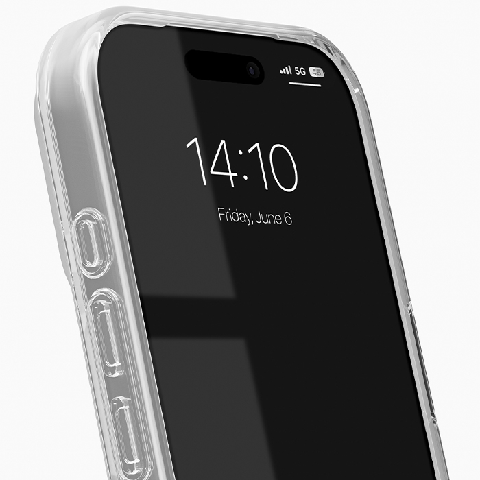 Transparent telefonskal från Ideal of Sweden med fokus på både skydd och bevarad design. Den klara finishen gör att telefonens färg och detaljer syns tydligt samtidigt som konstruktionen är testad för fall från upp till 3 meter. Förhöjda kanter runt utsatta partier bidrar till att skydda display och kamera mot slitage.