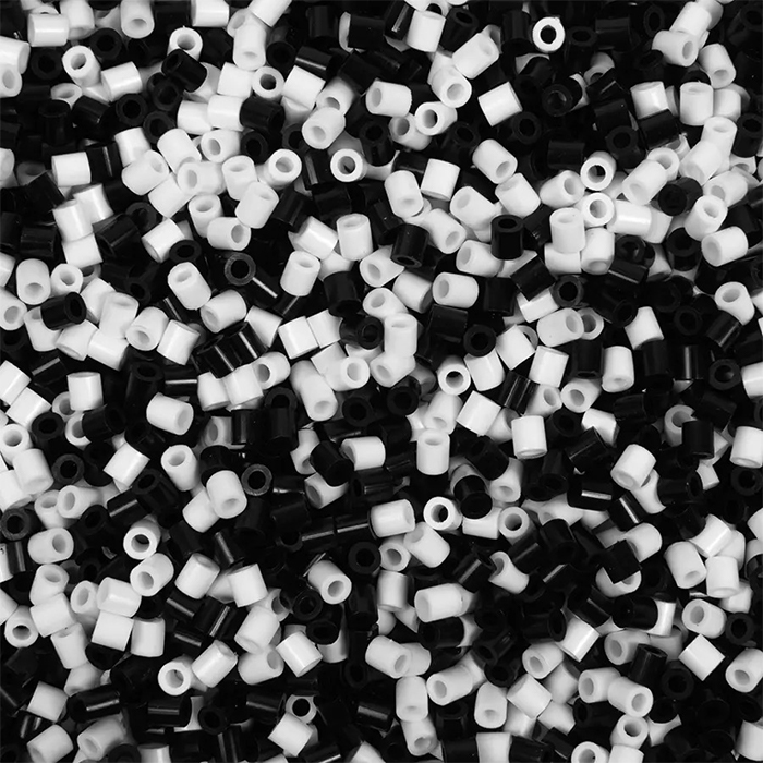 Rörpärlor med Svanenmärkning i svart och vitt, framtagna för användning med pärlplattor och hobbyprojekt. Färgerna är neutrala och passar för både enkla och mer detaljerade motiv.