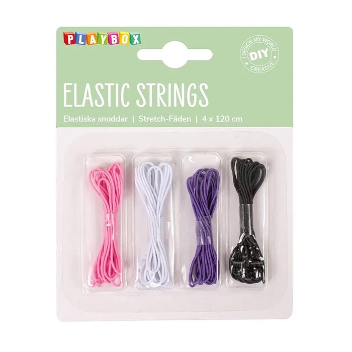 | Elastisk snodd Playbox Ø1mm 1,2m blandade färger 4st/fp Blandade färger 1,2m 4-pa | PB2461991 | 1 st |