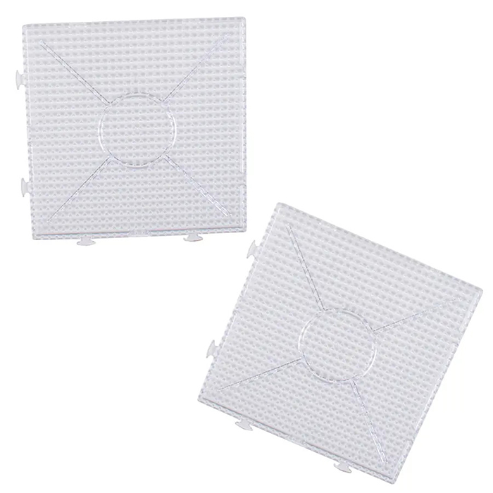 Kvadratiska pärlplattor med Svanenmärkning som kan sättas ihop till större arbetsytor vid behov. Konstruktionen gör det möjligt att utöka storleken på pärlprojekten stegvis.