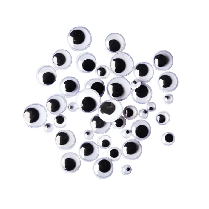 Goggly eyes med svartvit design och rörliga pupiller, levererade i fyra storlekar för variation i skapandet. De rörliga pupillerna ger ett levande uttryck i figurer och dekorationer. Lämpliga för pysselprojekt där ansikten eller detaljer ska lyftas fram. Kan kombineras med andra material för att skapa olika typer av kreativa arbeten.