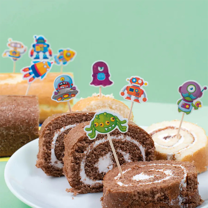 Dekorationsstickers med olika robot- och rymdmotiv i flera färger. Motiven kan kombineras för att bygga upp egna berättelser och visuella teman. Fästs enkelt på papper och andra släta ytor.