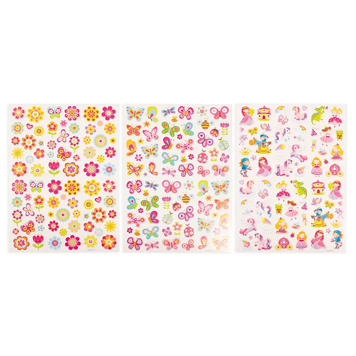 Dekorationsstickers med blandade motiv, från prinsessor och växter till djur. Variation i innehållet gör dem lämpliga för både enkla dekorationer och mer detaljerade projekt.