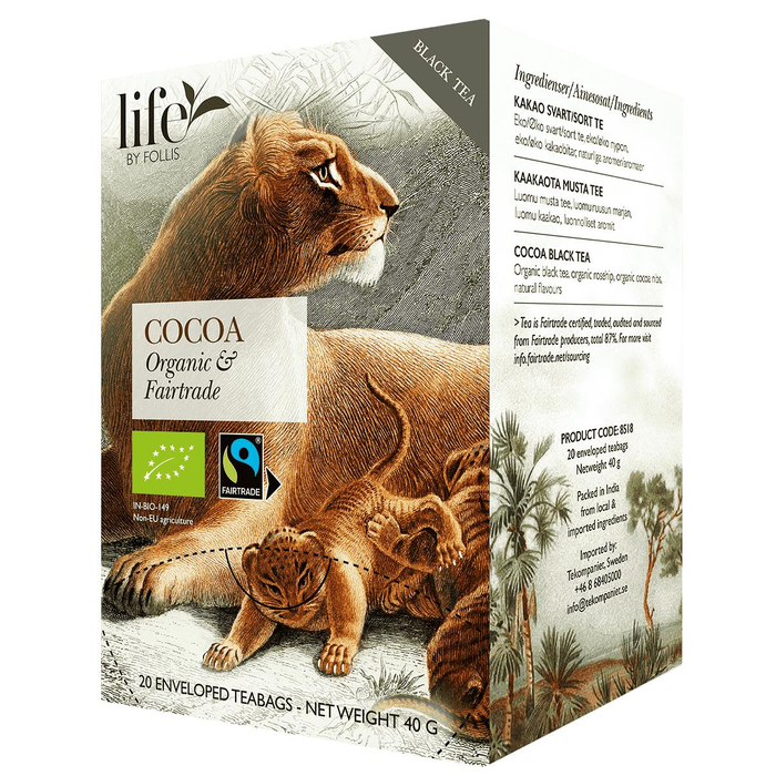 Kakao från Life by Follis är ett svart te smaksatt med kakao och chokladiga toner. Smaken är fyllig och välbalanserad med en mjuk avslutning som ger en rund helhet i koppen.