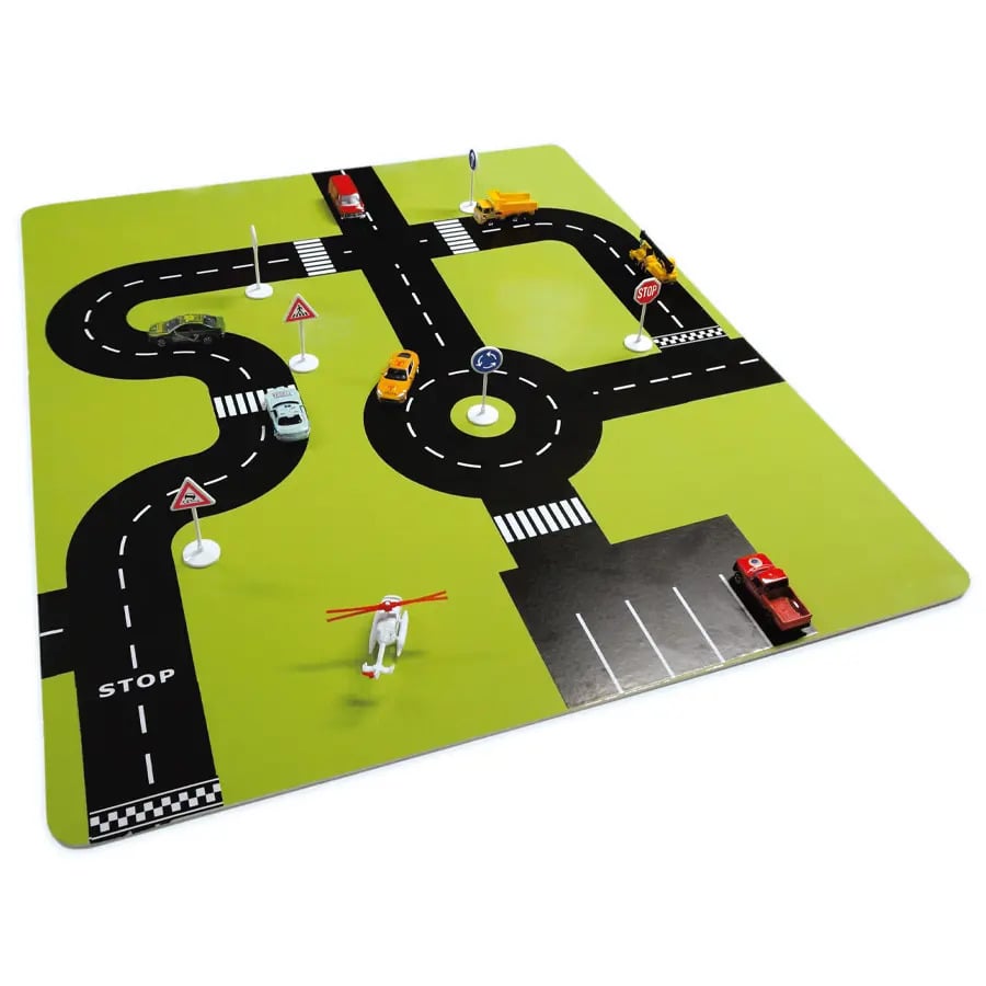 De kan kombineras för att skapa egna väglandskap och lekmiljöer på olika ytor. Passar för aktiviteter där barn bygger upp och anpassar sina egna bilbanor i lek och pyssel.