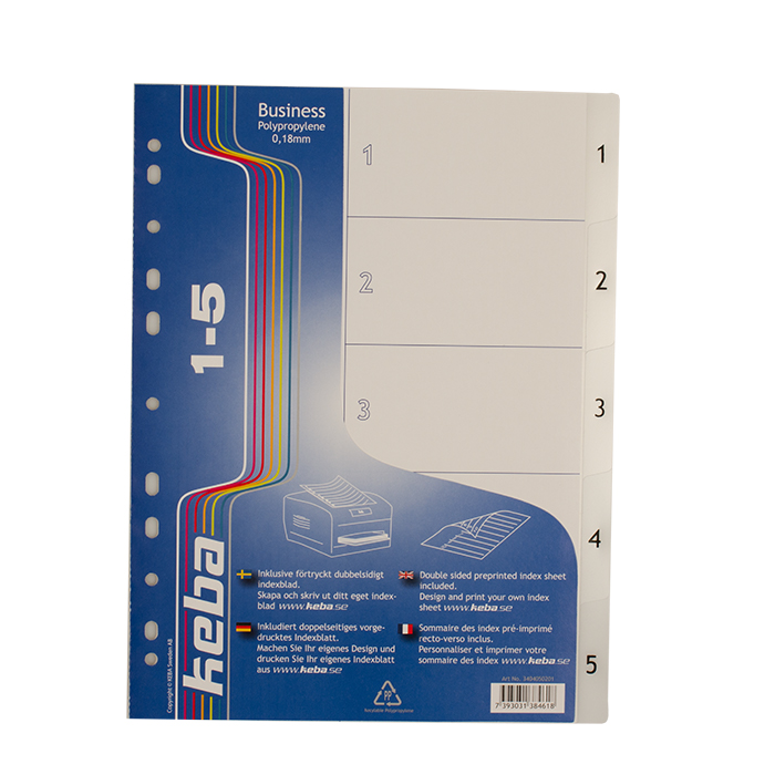 Keba Business är ett exklusivt register i transparent, kraftig 0,18mm PP-plast. Försättsbladet är förtryckt och kan vändas och användas på båda sidor.